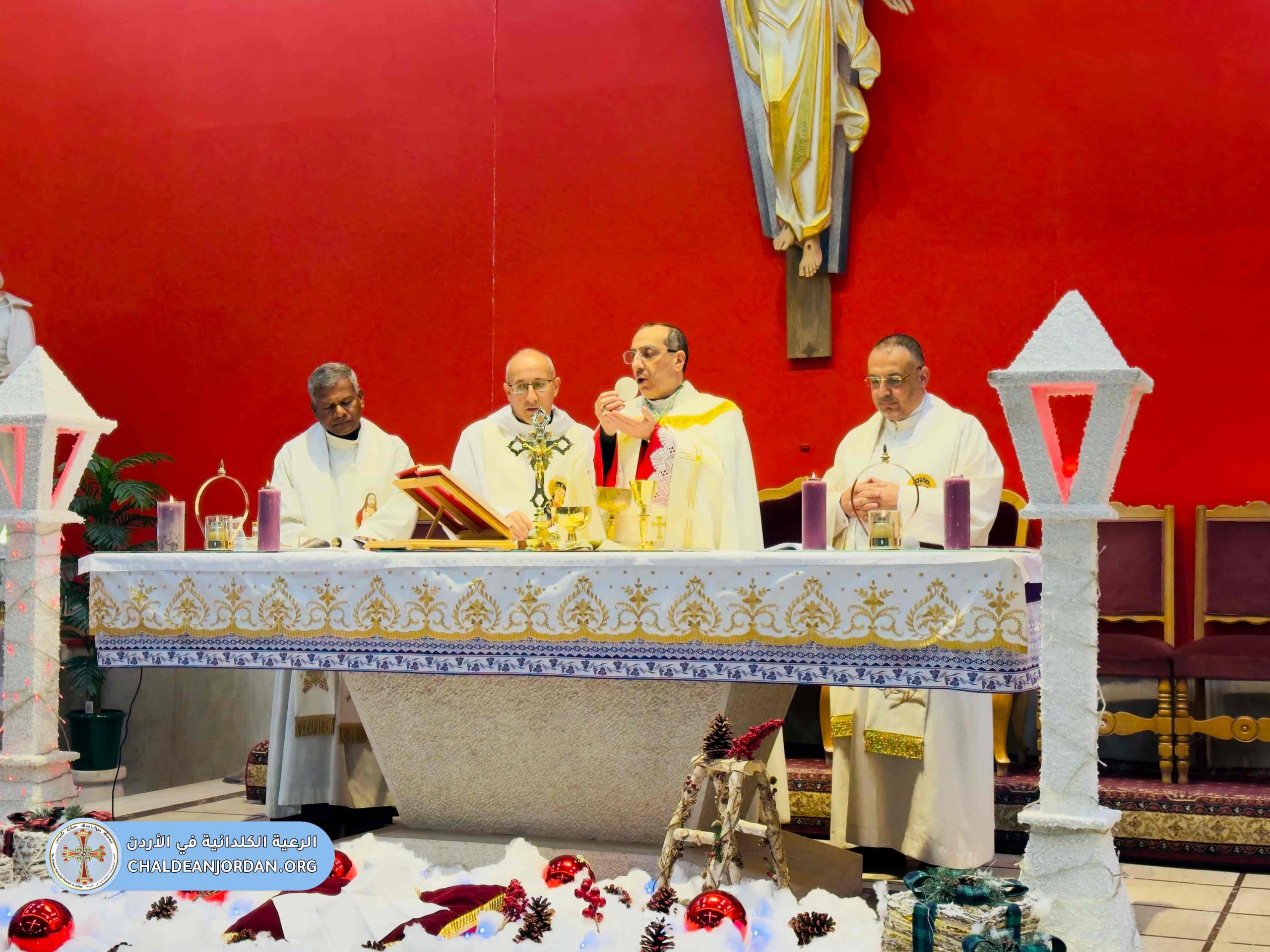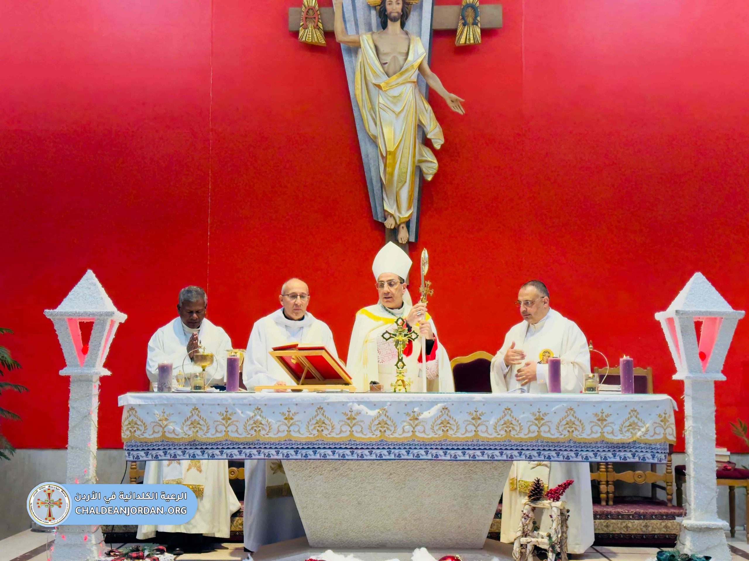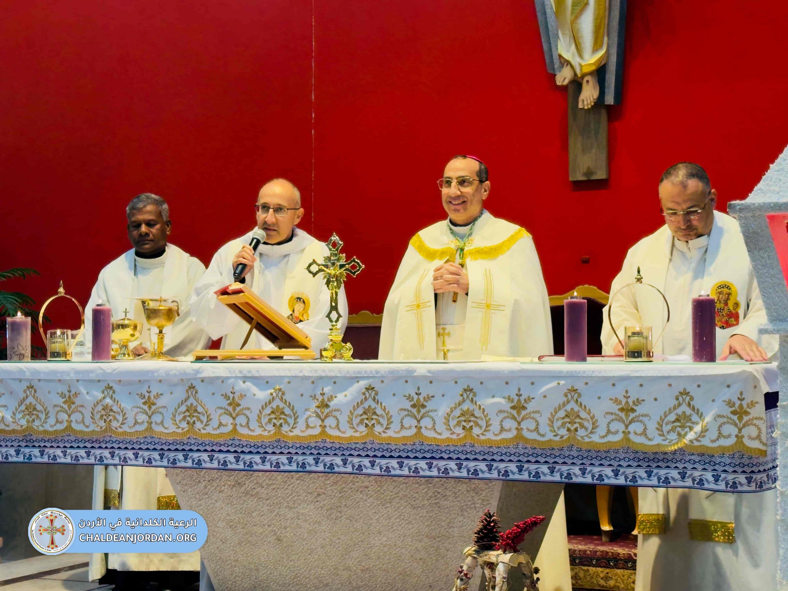 بدعوة من الخورأسقف زيد حبابه النائب البطريركي الكلداني وراعي الخورنة ،إحتفل سيادة المطران إياد طوال النائب البطريركي للاتين في الأردن الجزيل الاحترام بالقداس الإلهي بحسب الطقس الكلداني مع أبناء الرعية الكلدانية في الأردن وذلك في يوم الأحد ٢٠٢٥/١٢/٧ في كنيسة القديس يوحنا دي لاسال (الفرير) بحضور عدد كبير من ابناء الرعية وكوادرها. شارك في القداس حضرة الأب إبراهيم نفاع خوري رعية اللاتين في جبل الحسين، وحضرة الأب بيمال اليسوعي رئيس دير الآباء اليسوعيين في الأردن والفرير فادي صفير المحترم