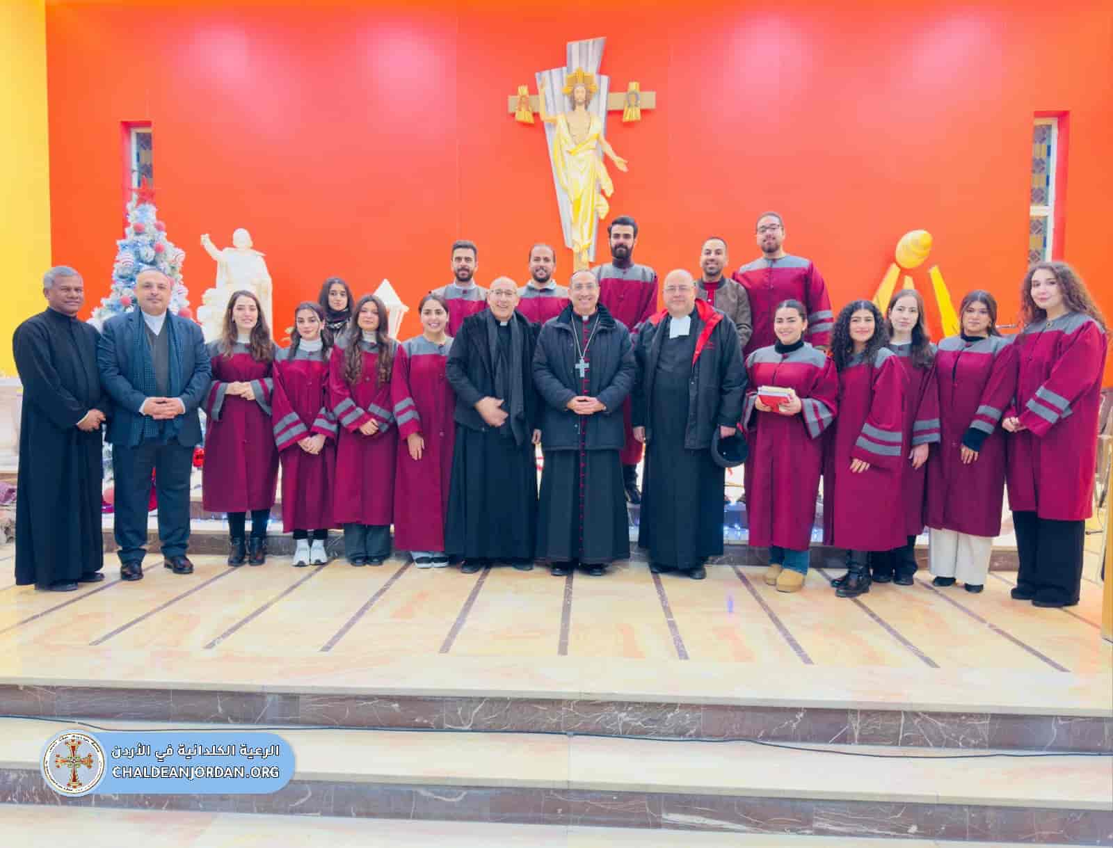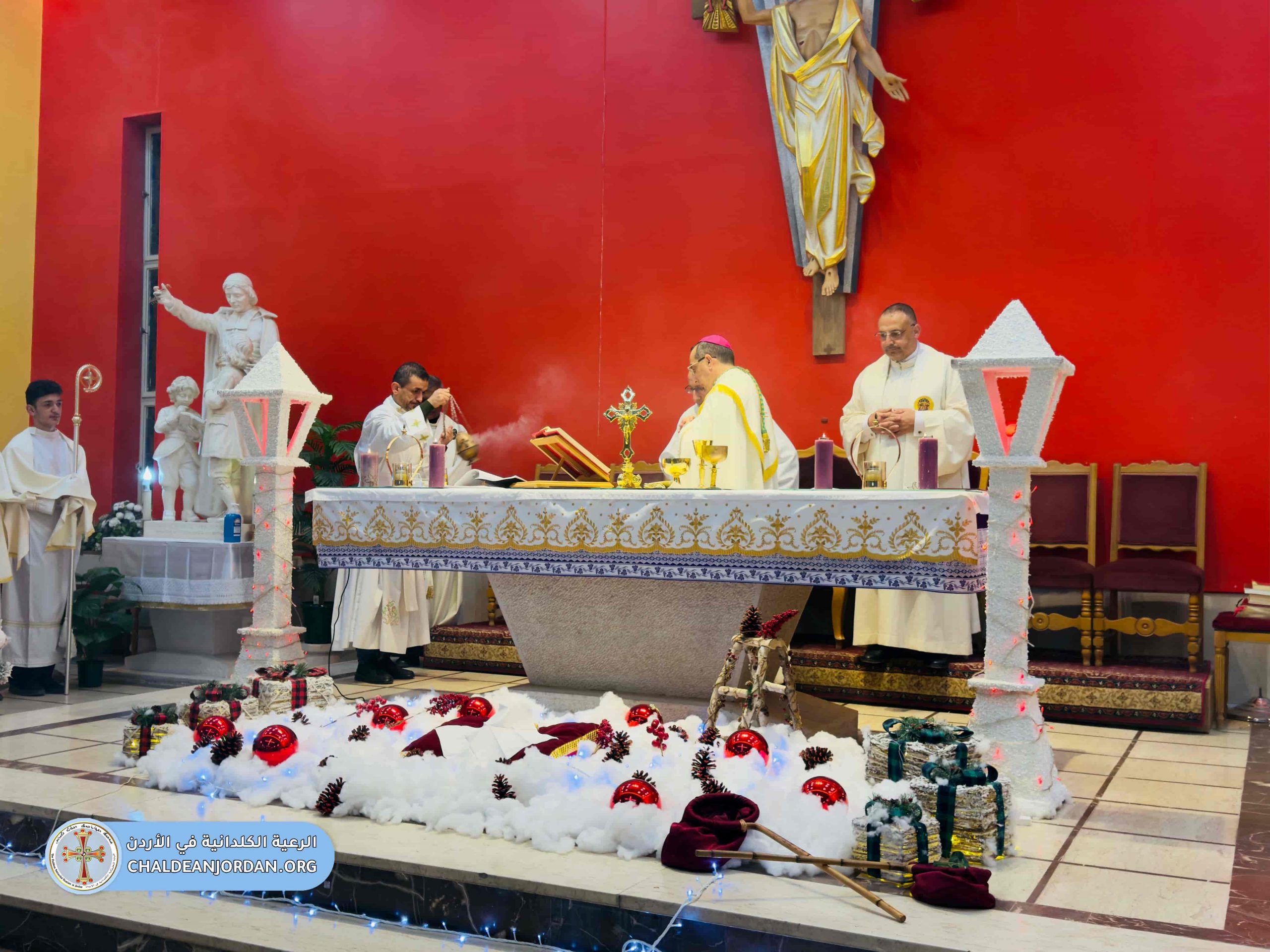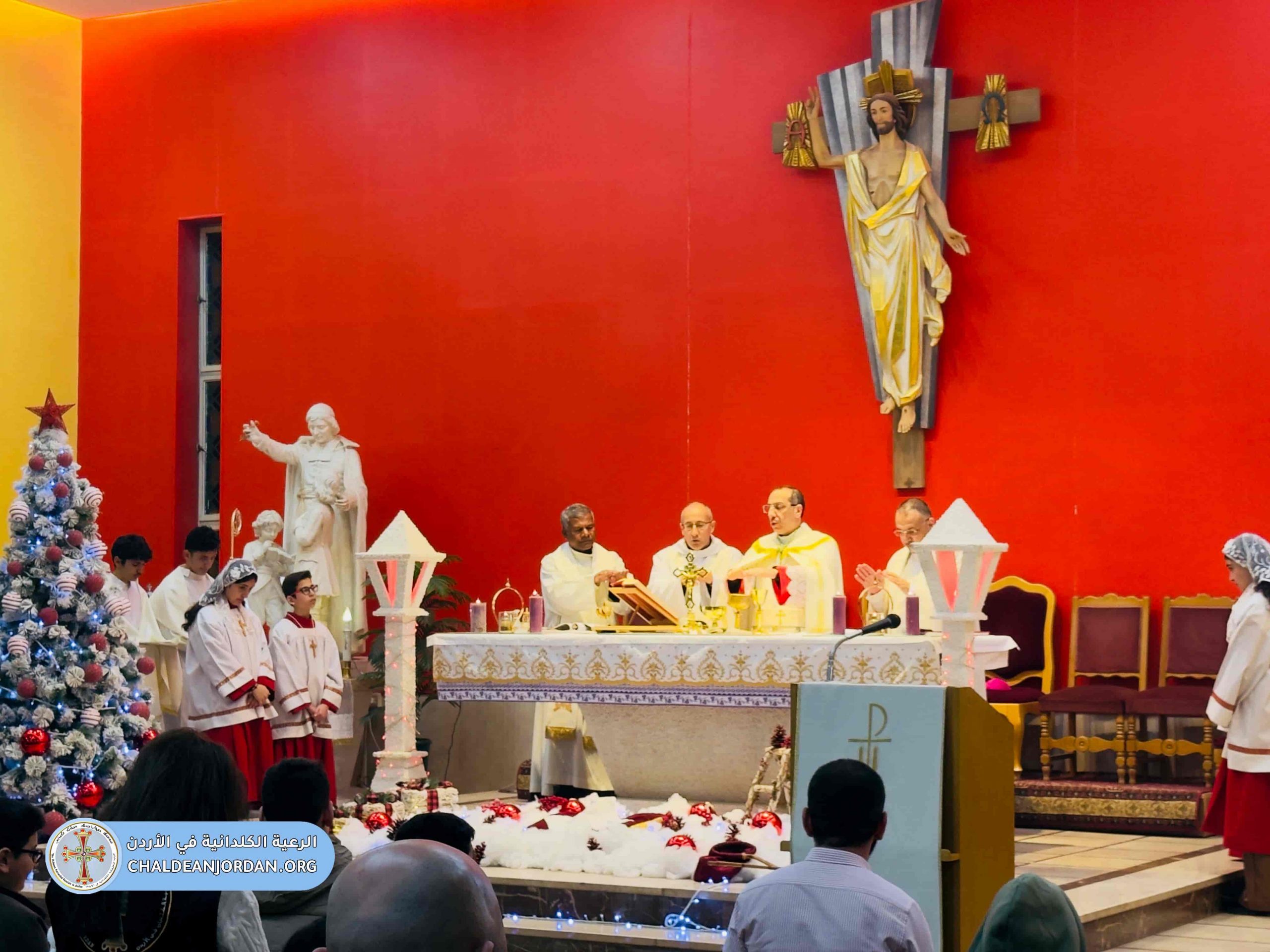 بدعوة من الخورأسقف زيد حبابه النائب البطريركي الكلداني وراعي الخورنة ،إحتفل سيادة المطران إياد طوال النائب البطريركي للاتين في الأردن الجزيل الاحترام بالقداس الإلهي بحسب الطقس الكلداني مع أبناء الرعية الكلدانية في الأردن وذلك في يوم الأحد ٢٠٢٥/١٢/٧ في كنيسة القديس يوحنا دي لاسال (الفرير) بحضور عدد كبير من ابناء الرعية وكوادرها. شارك في القداس حضرة الأب إبراهيم نفاع خوري رعية اللاتين في جبل الحسين، وحضرة الأب بيمال اليسوعي رئيس دير الآباء اليسوعيين في الأردن والفرير فادي صفير المحترم
