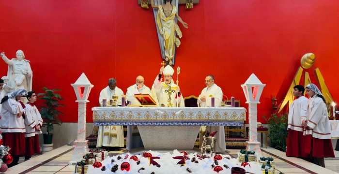 بدعوة من الخورأسقف زيد حبابه النائب البطريركي الكلداني وراعي الخورنة ،إحتفل سيادة المطران إياد طوال النائب البطريركي للاتين في الأردن الجزيل الاحترام بالقداس الإلهي بحسب الطقس الكلداني مع أبناء الرعية الكلدانية في الأردن وذلك في يوم الأحد ٢٠٢٥/١٢/٧ في كنيسة القديس يوحنا دي لاسال (الفرير) بحضور عدد كبير من ابناء الرعية وكوادرها. شارك في القداس حضرة الأب إبراهيم نفاع خوري رعية اللاتين في جبل الحسين، وحضرة الأب بيمال اليسوعي رئيس دير الآباء اليسوعيين في الأردن والفرير فادي صفير المحترم